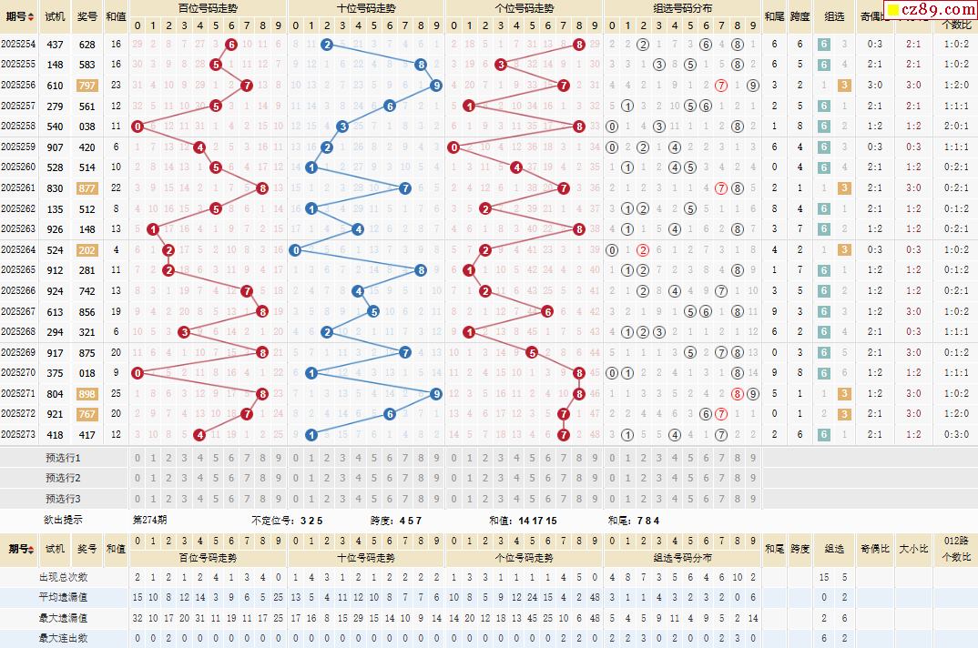 首页 > 排列3预测 > 274期体彩排列3近期历史号码图表